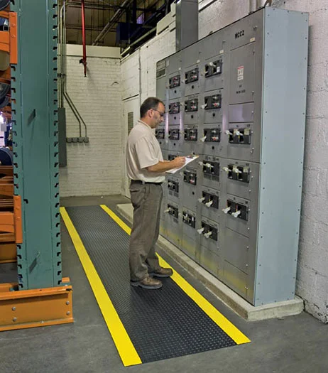 Our insulated PVC matting is formulated to provide insulation to workers from being grounded thus preventing electric shock. These switchboard mats also provide cushioning to the worker. Ideal for use in front of electrical fuse boxes, transformers and high voltage boxes.