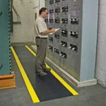 This switchboard runner matting is available in a ridged or diamond (checkerplate) style surface pattern. Available in 2', 3' & 4' lengths and with or without colored borders (3' width only - diamond in yellow, ridged in yellow or blue). Testing is done in conformance with ANSI/ASTM D-178 specifications.
